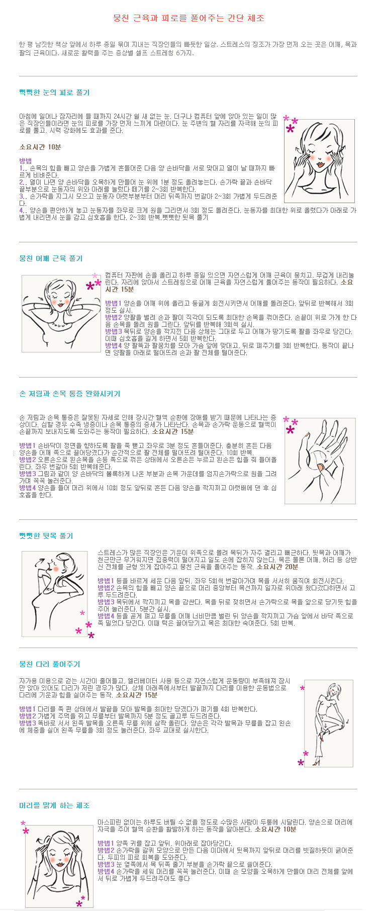 뭉친근육과 눈의피로를 풀어주는 간단한체조 페이지 정보 작성자 내츄럴 I&T 작성일14-11-12 17:39 조회3,282회 댓글0건 본문 댓글목록 등록된 댓글이 없습니다. 이전글 다음글 목록