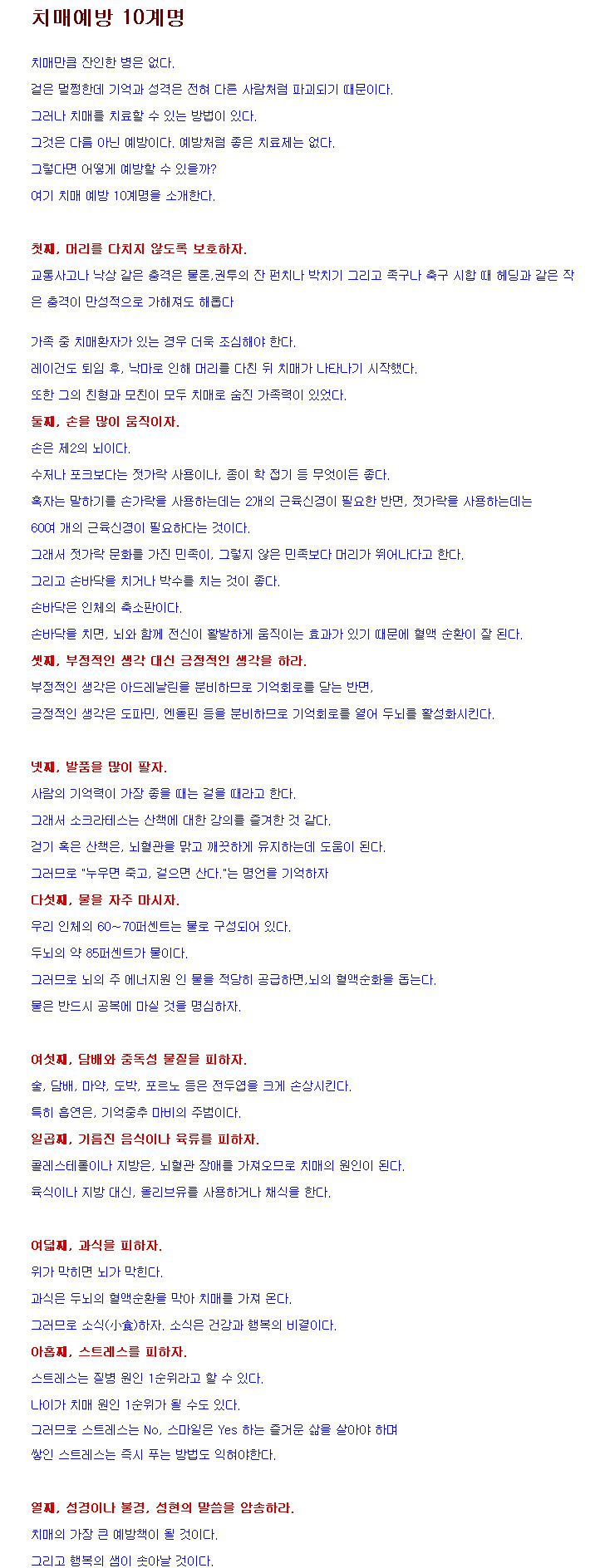 치매예방 10계명